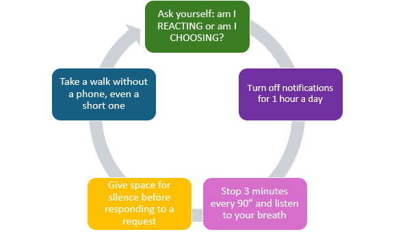 - Turn off notifications for 1 hour a day. Stay with your anxiety, watch the mind flee here and there, like a mouse looking for the exit. Bring your attention back to the world.